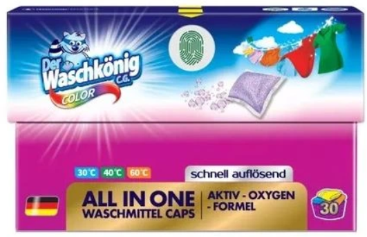 Der Waschkönig Color to innowacyjne rozwiązanie dla tych, którzy pragną doskonałej pielęgnacji tkanin kolorowych. Skoncentrowany proszek zamknięty w kapsułce został opracowany z myślą o skuteczności już przy temperaturze 30°C, co pozwala oszczędzać energię bez utraty efektywności.